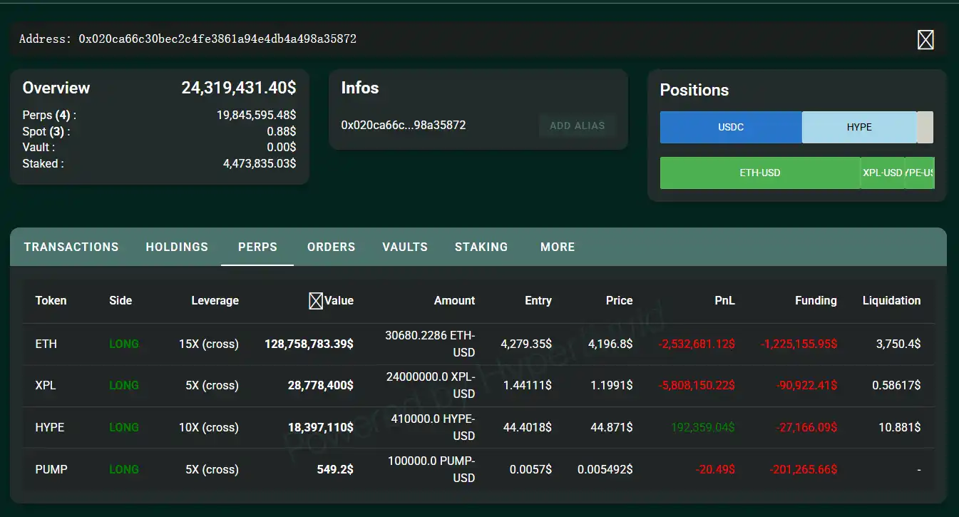 Currently, the asset balance in the address is $24.31 million, with a loss of $5.08 million in the past seven days, and the total account profit has narrowed to $12.36 million.