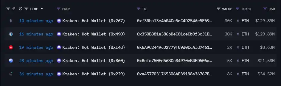 BlockBeats News Update, September 8: According to Onchain lens monitoring, 5 newly created wallet addresses withdrew a total of 75,000 ETH from Kraken to multiple chains in the past 36 minutes, amounting to $3.2283 billion. The breakdown is as follows: