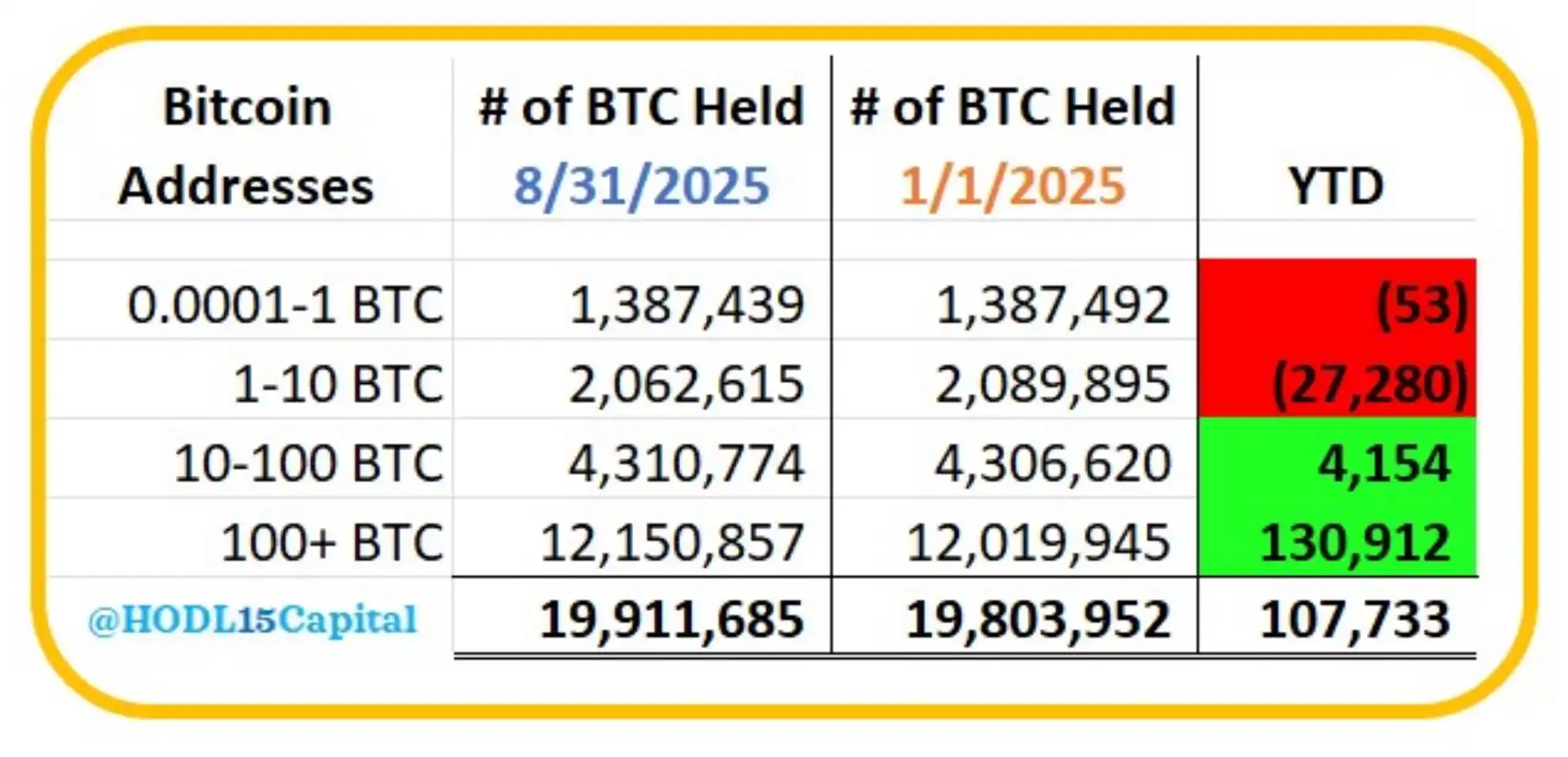 BlockBeats News, September 7th, according to HODL15Capital monitoring, a total of 107,733 bitcoins have been mined since the beginning of the year.