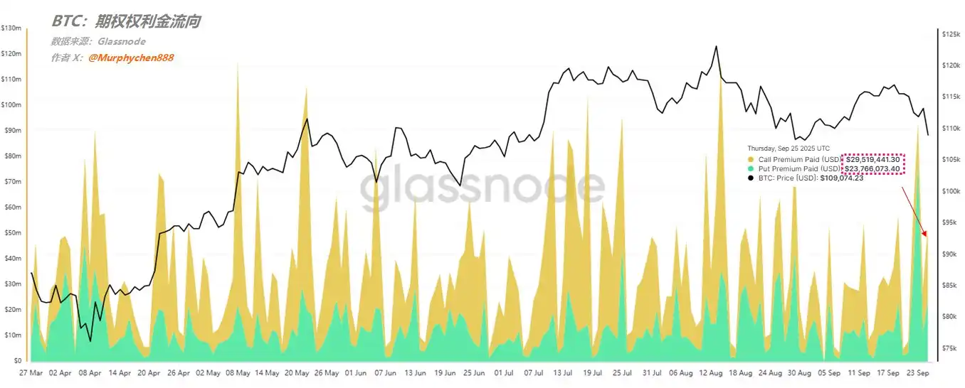 BlockBeats News, September 26th, On-chain data analyst Murphy stated that following yesterday’s sharp decline, the Call Premium Paid and Put Premium Paid have almost returned to equilibrium, with the premium paid for buying call options even slightly exceeding that of put options. Although this does not necessarily mean an immediate rebound will occur, it does mechanically reduce the probability of a further rapid decline in the short term, indicating that market sentiment is not continuing to deteriorate towards a more pessimistic direction.