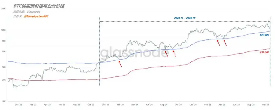 In this current cycle, BTC has been trading above the fair price for nearly 2 years. There have been 3 times when it came very close to the blue line: the “good news landing is bad news” after the ETF approval; the unraveling of the yen carry trade in August 24; and the tariff crisis in April 25. However, it has never fallen below the fair price. Under the bull market foundation, BTC returning to the fair price is the best buying point. Today, the blue line is positioned at $97,000. If traders believe that the bull market foundation is still intact, then buying when BTC is close to $97,000 would be highly cost-effective. If users believe that the market has turned bearish, they can continue to wait for a deeper bearish moment, perhaps an opportunity to pick up cheap chips below $55,000. This analysis is for educational purposes only and not investment advice.