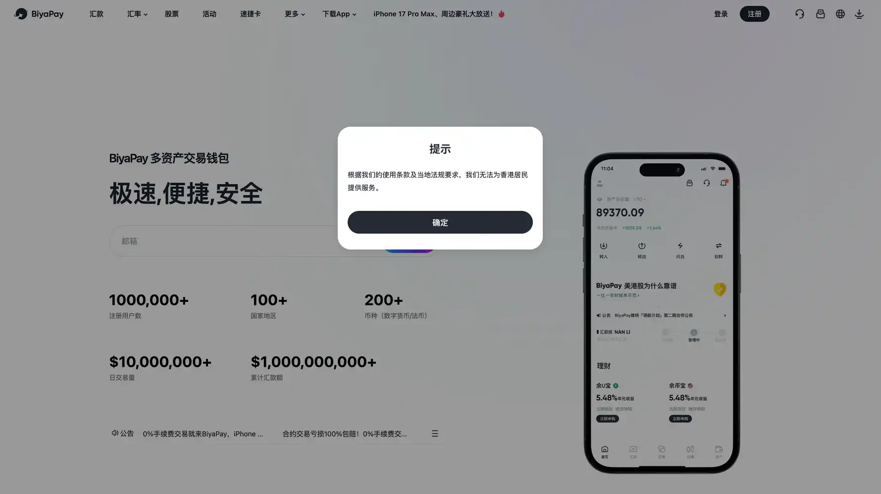 BiyaPay stated that the company currently does not possess a stock trading license or a cryptocurrency trading license in the Hong Kong region, and strictly complies with relevant laws and regulations of the Hong Kong SFC, expressly stating that BiyaPay does not provide stock and cryptocurrency trading services to residents of the Hong Kong region.