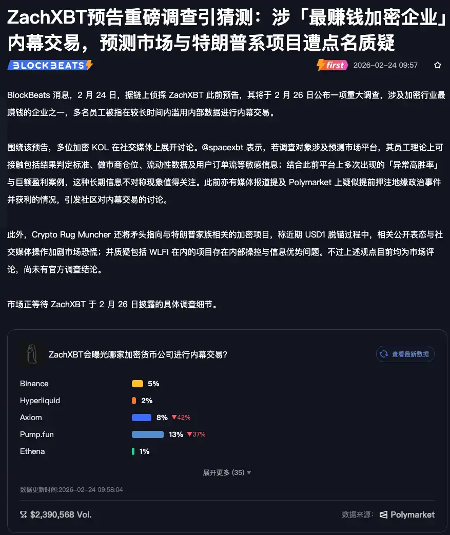 This update aims to further enhance the professionalism and forward-looking value of news content. The prediction market, as an efficient information aggregation and price discovery mechanism, has demonstrated keen insights in various fields such as tech releases, geopolitics, and entertainment awards ahead of traditional channels. By integrating Polymarket and strengthening data comparison functionality, BlockBeats hopes to provide readers with a more comprehensive information reference path, achieve a complete loop from “event reporting” to “market foresight + post-event verification,” and help users more accurately grasp trends and truths in a complex environment.