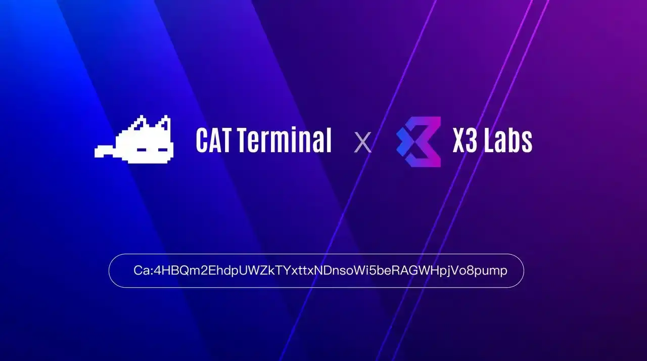 BlockBeats News, September 21st, Middle Eastern crypto institution X3 Labs announced a strategic partnership with the CAT Terminal community to create a liquidity pool for its AI Meme token $CAT on the PumpFun Swap platform, injecting 1,000 $SOL worth of liquidity.