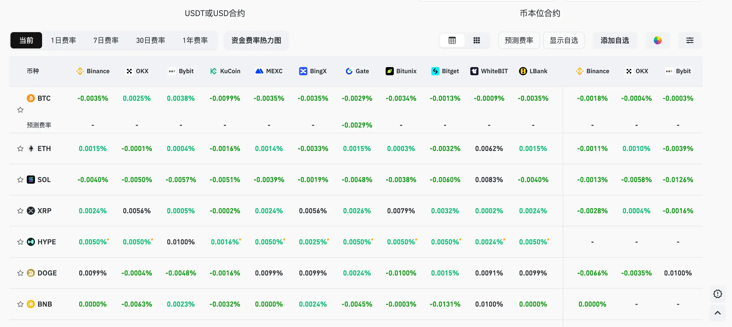 Current mainstream CEX and DEX funding rate displays market-wide bearish sentiment