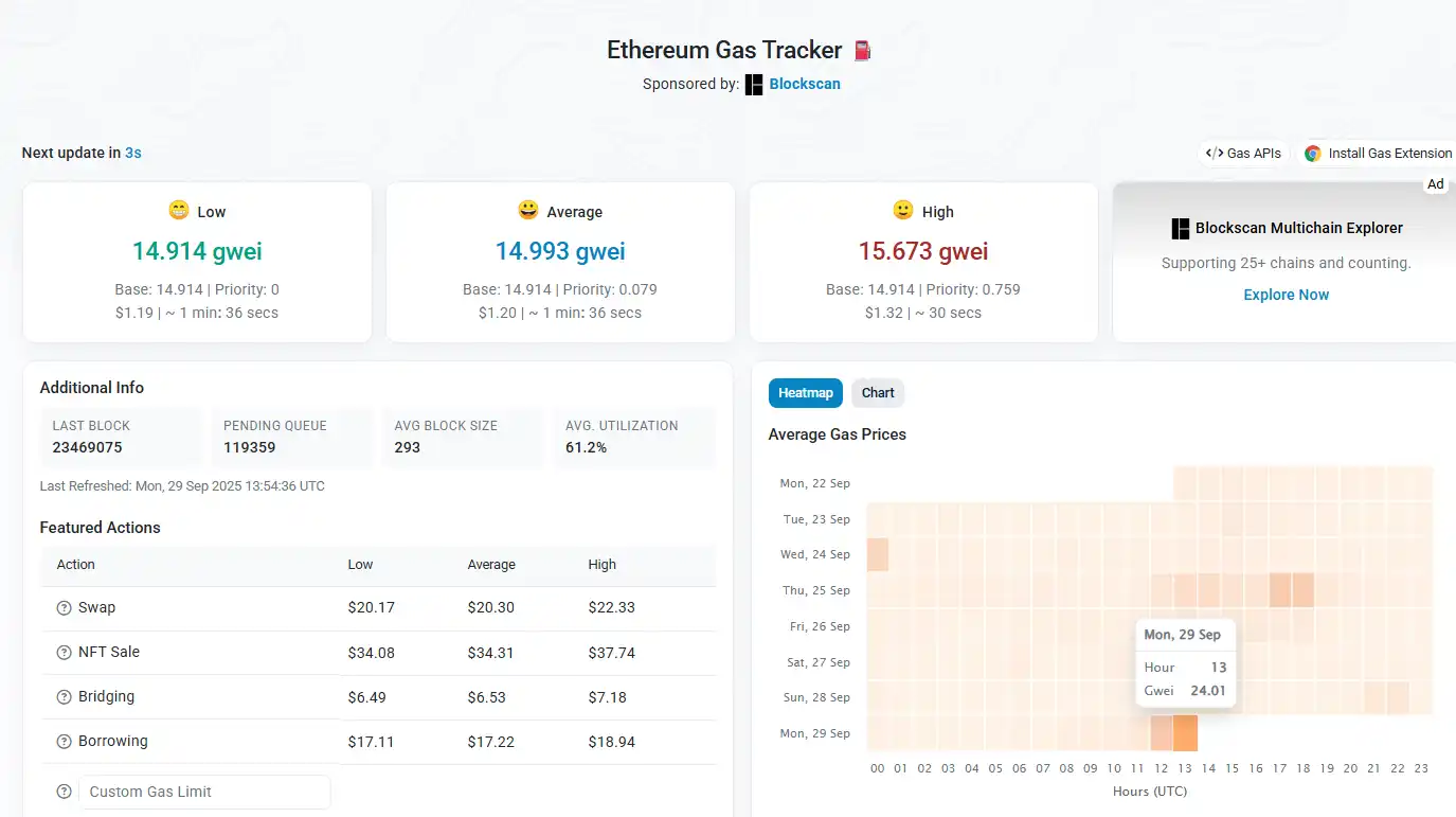 BlockBeats News, September 29th, due to the “Falcon Finance Airdrop Claim Event,” the Ethereum network Gas fee has risen to 15 gwei.
