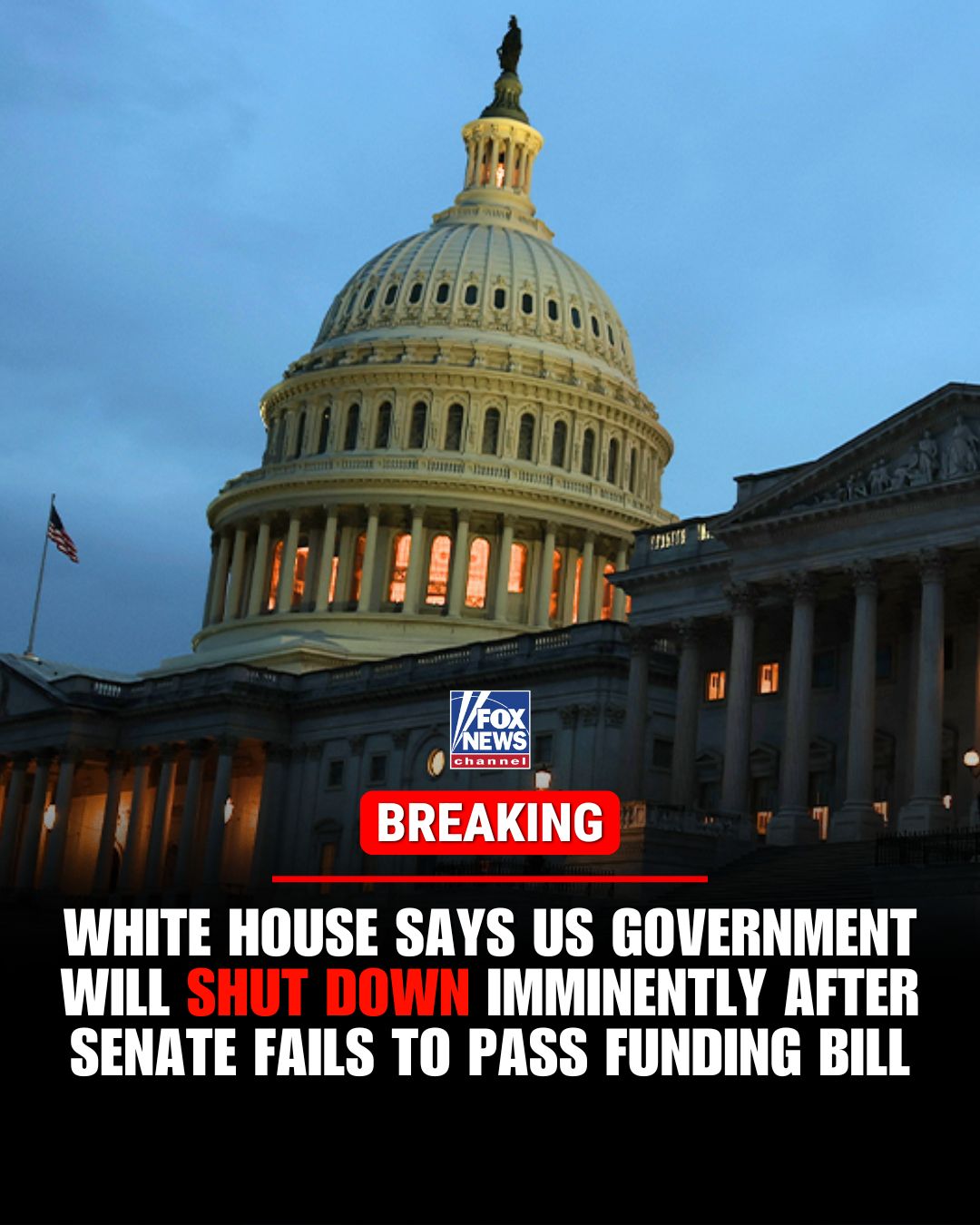 BlockBeats News, October 1st, according to Fox News, due to the U.S. Senate’s failure to pass a federal funding bill, the White House has formally announced that the government is about to shut down.