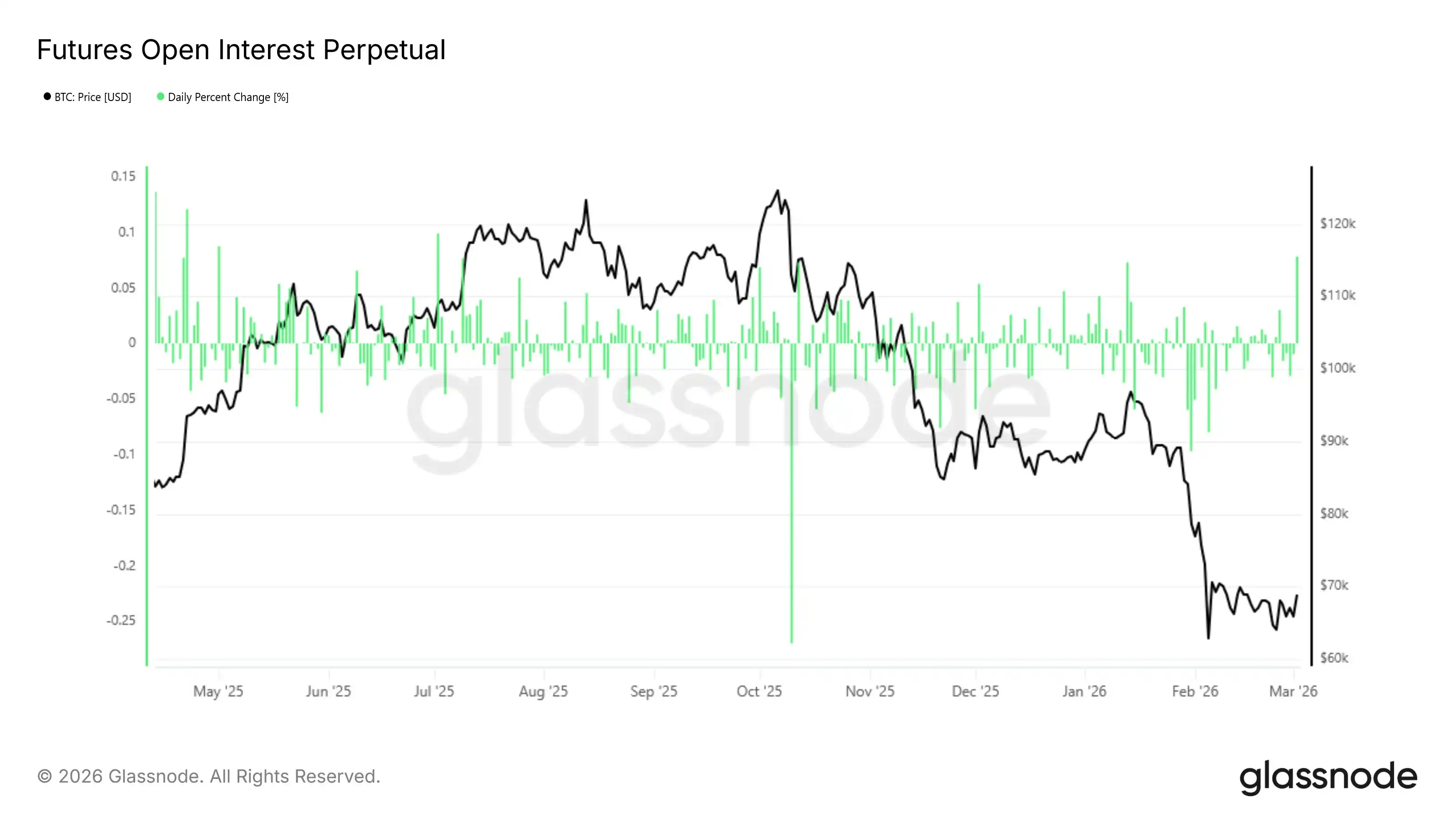 BlockBeats News, March 4th, according to glassnode, the total network contract holdings saw the largest single-day percentage increase since July 2025. With the Bitcoin price testing $69,400, the leverage ratio has significantly expanded. This phenomenon aligns with speculators heavily betting on Bitcoin price breaking through $70,000 but ultimately failing to materialize.