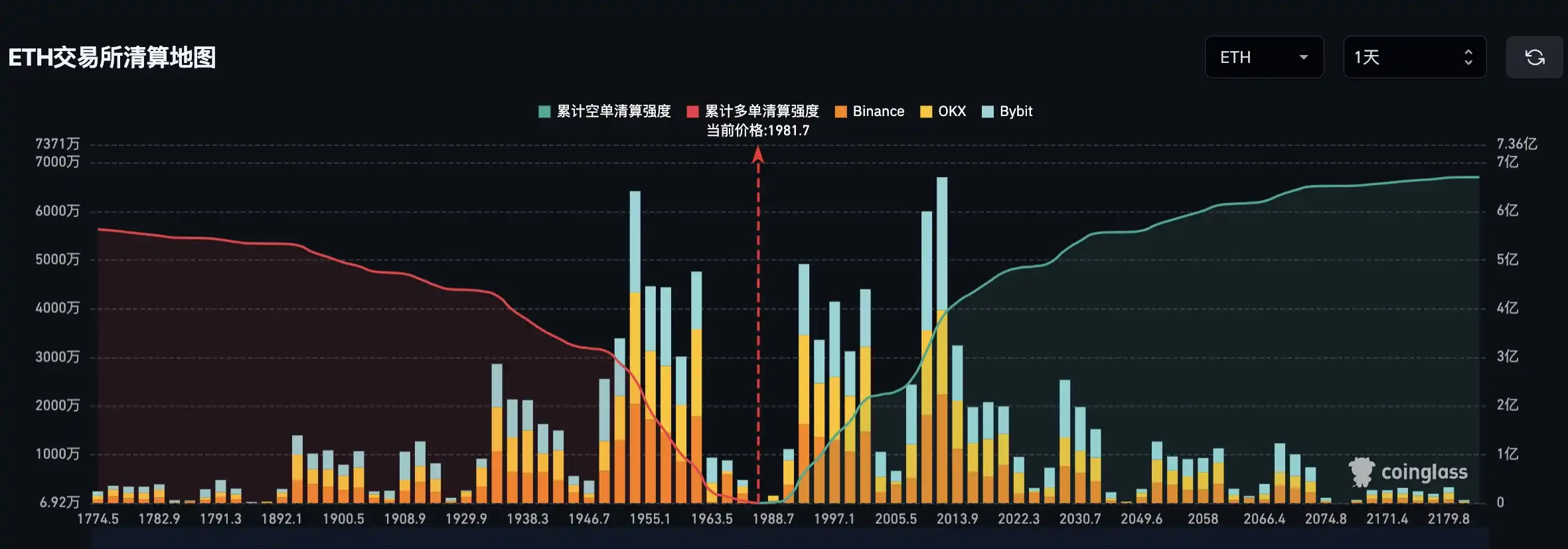 On the other hand, if Ethereum falls below $1900, the cumulative long liquidation strength of mainstream CEXs will reach $506 million.