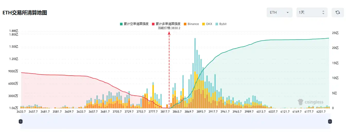 Conversely, if Ethereum falls below $3700, the cumulative long liquidation intensity of mainstream CEXs will reach $726 million.