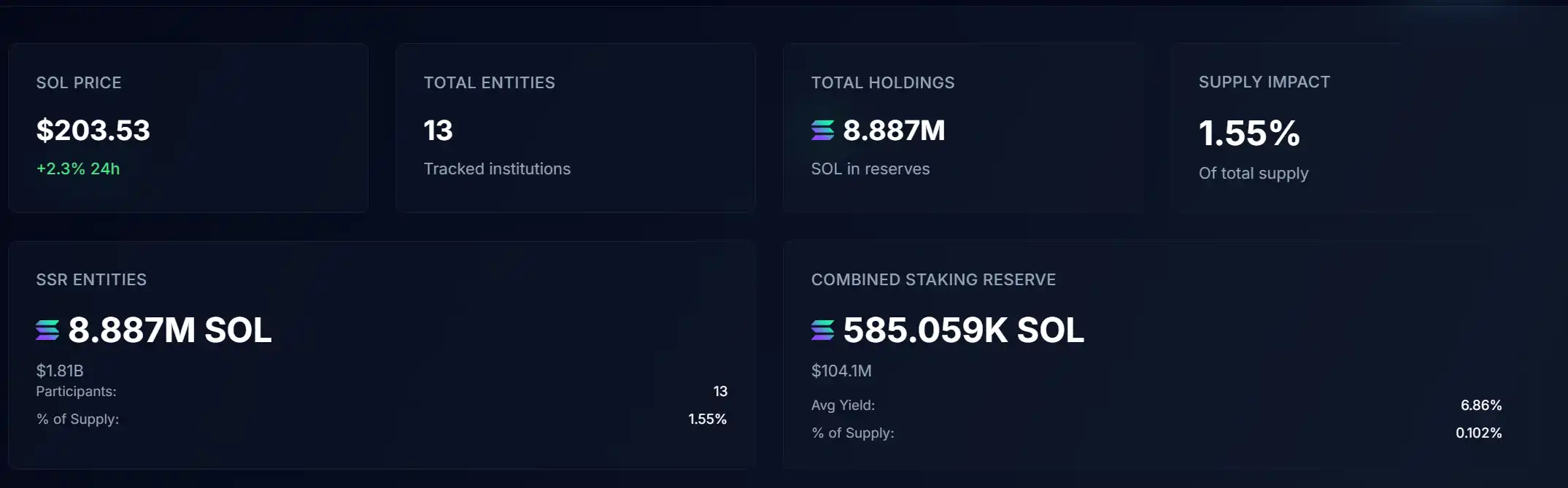 BlockBeats News, September 5th, according to data from Strategic SOL Reserve, there are currently 13 entities that have established SOL treasury reserves, with a total holding of 8.887 million SOL, accounting for 1.55% of SOL’s current total supply. Among them, approximately 585,000 SOL has been used for staking, with a value of $1.041 billion, an average staking reward rate of 6.86%, accounting for 0.102% of the total supply. The top holding entities are as follows: