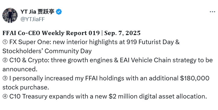 Home News Jia Yueting: To Announce Three Major Growth Engines of Crypto Treasury and EAI Vehicle Chain Strategy, C10 Treasury Adds $2 Million in Digital Asset Allocation