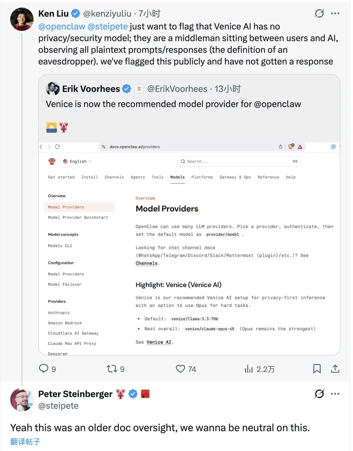 At the same time, OpenClaw founder Peter Steinberger clarified in a post earlier today, stating, “This was an oversight in a previous document, and we aim to remain neutral on this matter.”