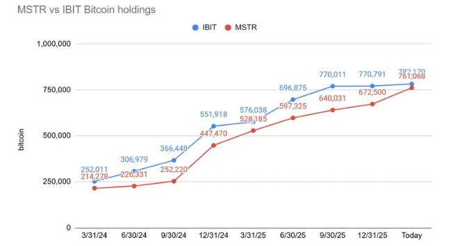 BlockBeats News, March 19th, according to Bitcoin Treasuries, Strategy has recently significantly increased its Bitcoin holdings, with its Bitcoin holdings expected to surpass BlackRock’s iShares Bitcoin Trust (IBIT). As of March 19, 2026, Strategy holds 761,068 BTC, worth approximately $56.2 billion, narrowing the gap with BlackRock’s 782,170 BTC holdings to only 21,102 BTC.