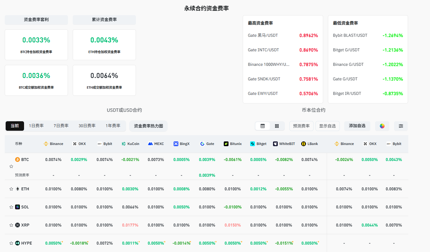 The current mainstream CEX and DEX funding rate displays a shift in market sentiment towards neutrality