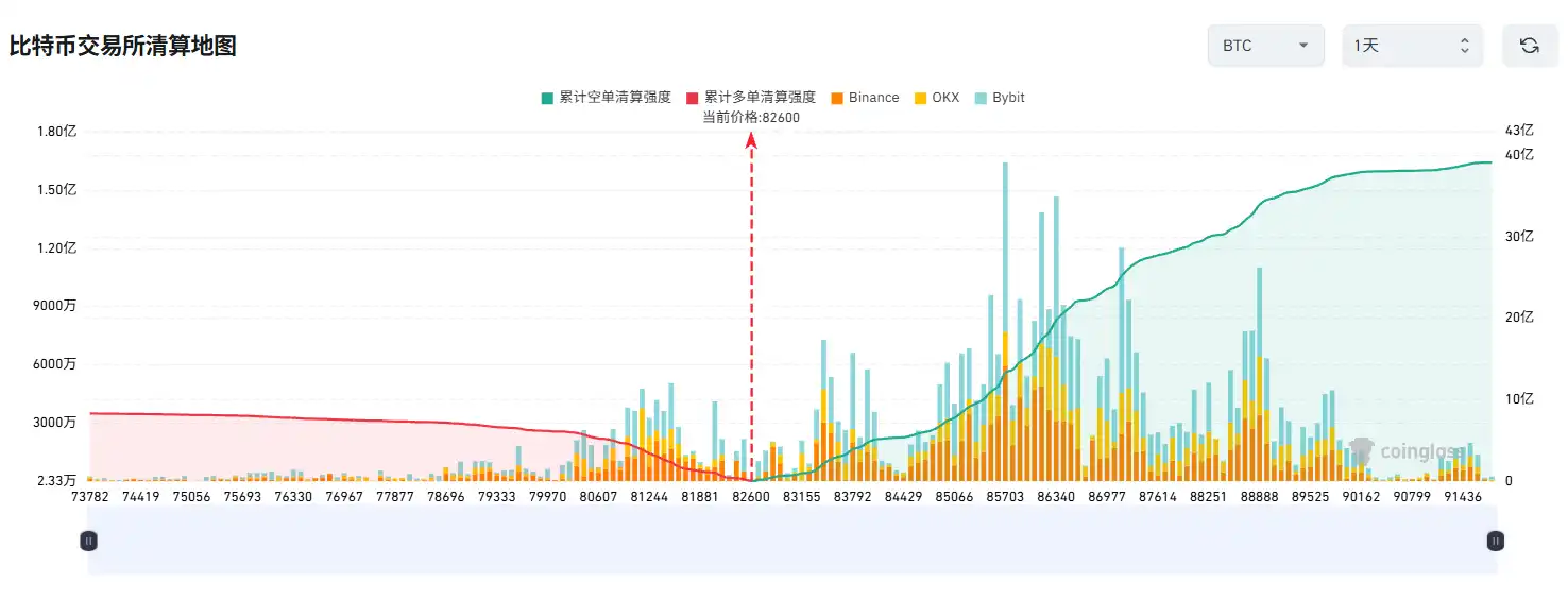 On the other hand, if Bitcoin surpasses $85,000, the cumulative short liquidation strength of mainstream CEX will reach $778 million. However, if Bitcoin rises to $86,000, the liquidation strength will reach $1.599 billion; if it rises to $87,000, the liquidation strength will reach $2.398 billion.