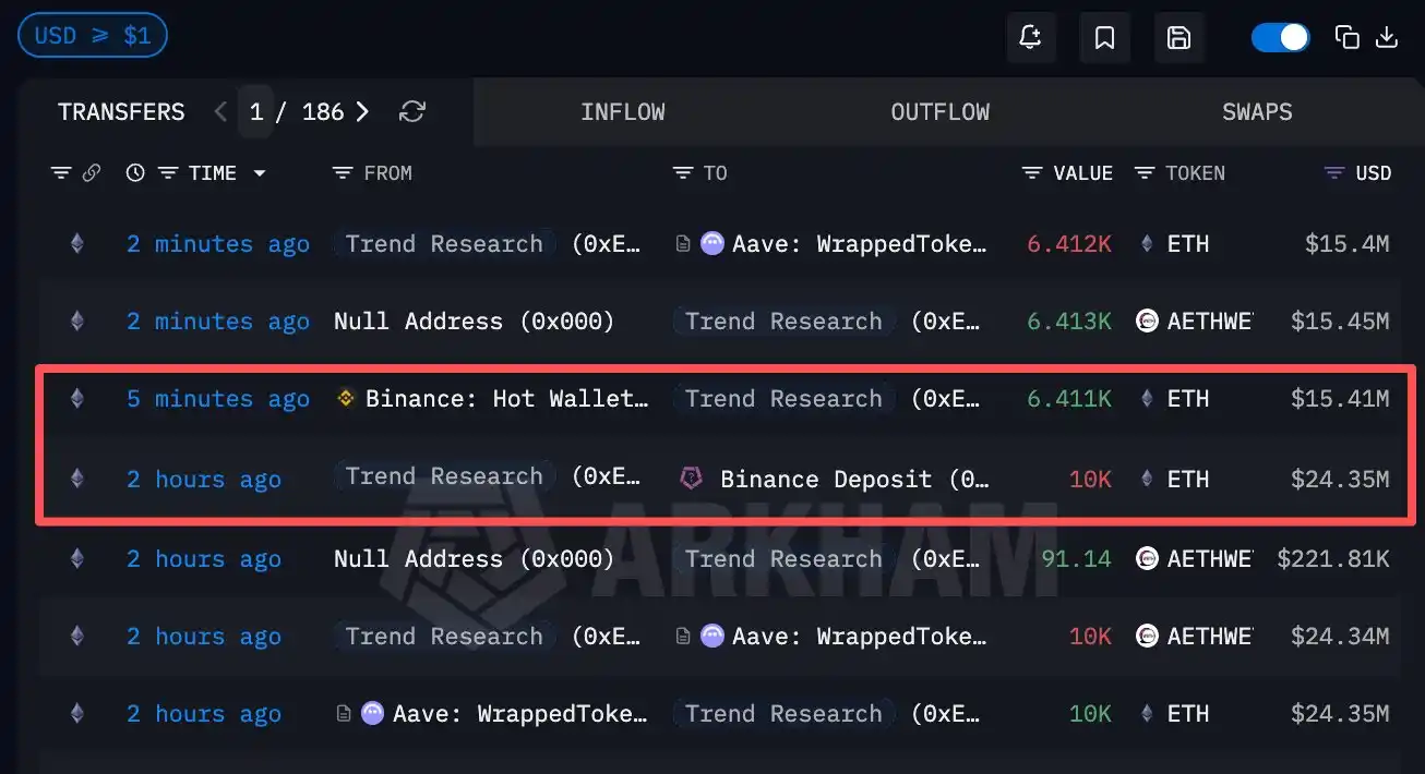 BlockBeats News, February 1st, according to on-chain analyst Ai Yi (@ai_9684xtpa), Trend Research deposited 10,000 ETH into Binance 2 hours ago and withdrew 6,411 ETH (15.41 million USD) 5 minutes ago.