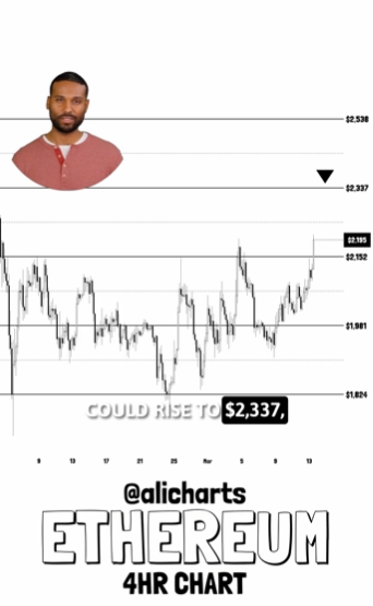 BlockBeats News, March 17th, Analyst Ali Charts updated the market view this morning, stating that Ethereum has broken through the $2152 resistance level, and the trend has officially turned bullish. The next target prices for Ethereum have been identified: $2337 and $2538.