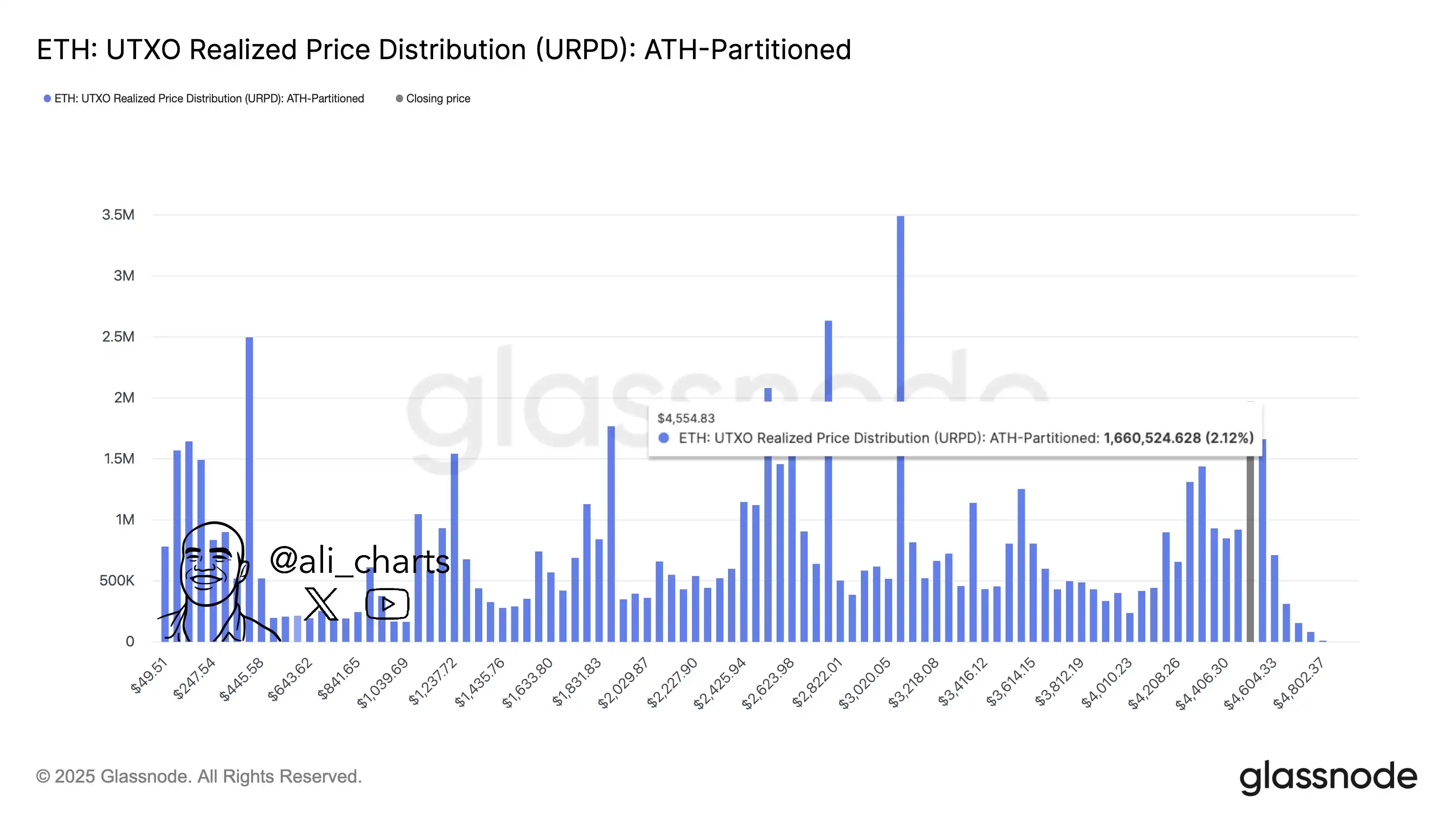 BlockBeats News, October 5th, Analyst @ali_charts stated that based on the “Realized Price Distribution Chart,” Ethereum has almost no visible resistance after breaking through $4,555.