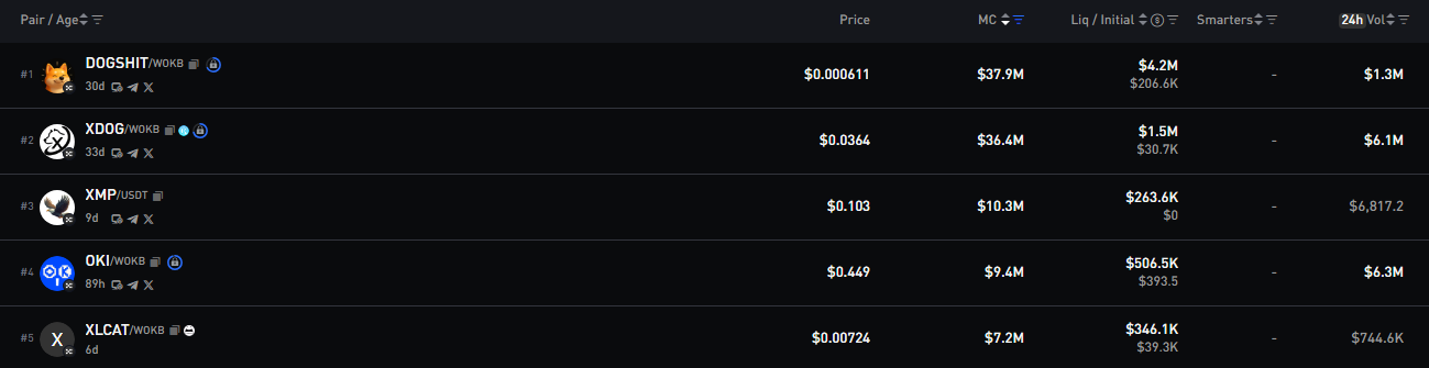 BlockBeats News, September 16th, according to Ave.ai monitoring, the X Layer platform’s Meme section remained active with OKX traffic support, with the top five total market cap exceeding $101 million, including: